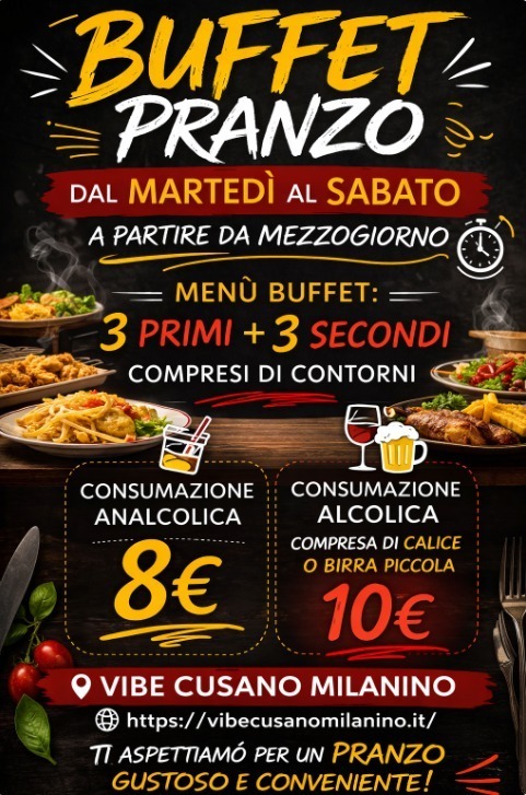 Situato nel cuore di Cusano Milanino e a pochi passi dalla frenesia di Milano, Vibe non è un semplice locale: è un’esperienza che cambia forma insieme alla tua giornata. Che tu stia cercando una colazione rilassante, un pranzo di lavoro gustoso o una serata indimenticabile, Vibe è la destinazione definitiva per chi cerca qualità e atmosfera.